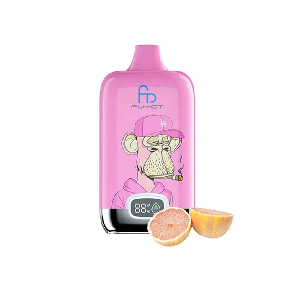 Zdjęcie e-papierosa Fumot Digital Box 12000 lub 20000, z wyraźnie widocznym, podświetlonym cyfrowym wyświetlaczem pokazującym stan baterii i liquidu.